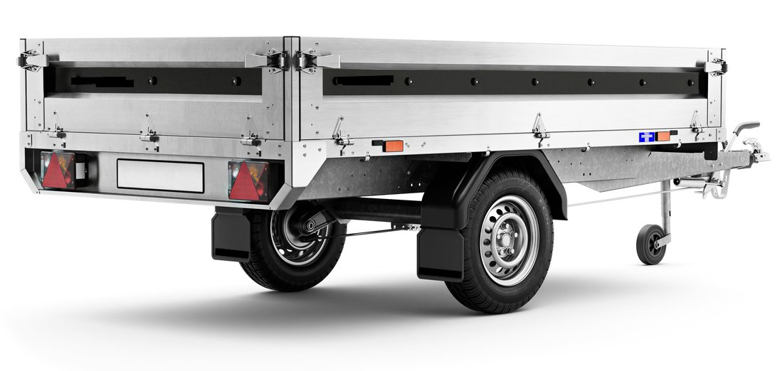 Høybygd professionell remorque pour usage quotidien sur des tâches lourdes. Toutes les ridelles en acier peuvent être rabattues ou retirées, offrant un accès facile et une grande flexibilité. La plateforme est protégée par un profilé en acier, garantissant robustesse et durabilité, même lors du chargement avec un chariot élévateur. Les points d’arrimage solides permettent de sécuriser facilement vos charges. Idéale pour le transport de matériaux divers, cette remorque combine fonctionnalité et robustesse. Les images sont à titre illustratif et peuvent montrer des accessoires optionnels.